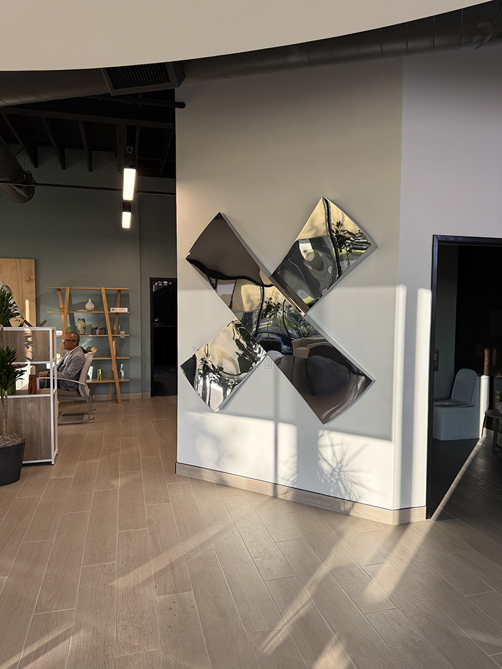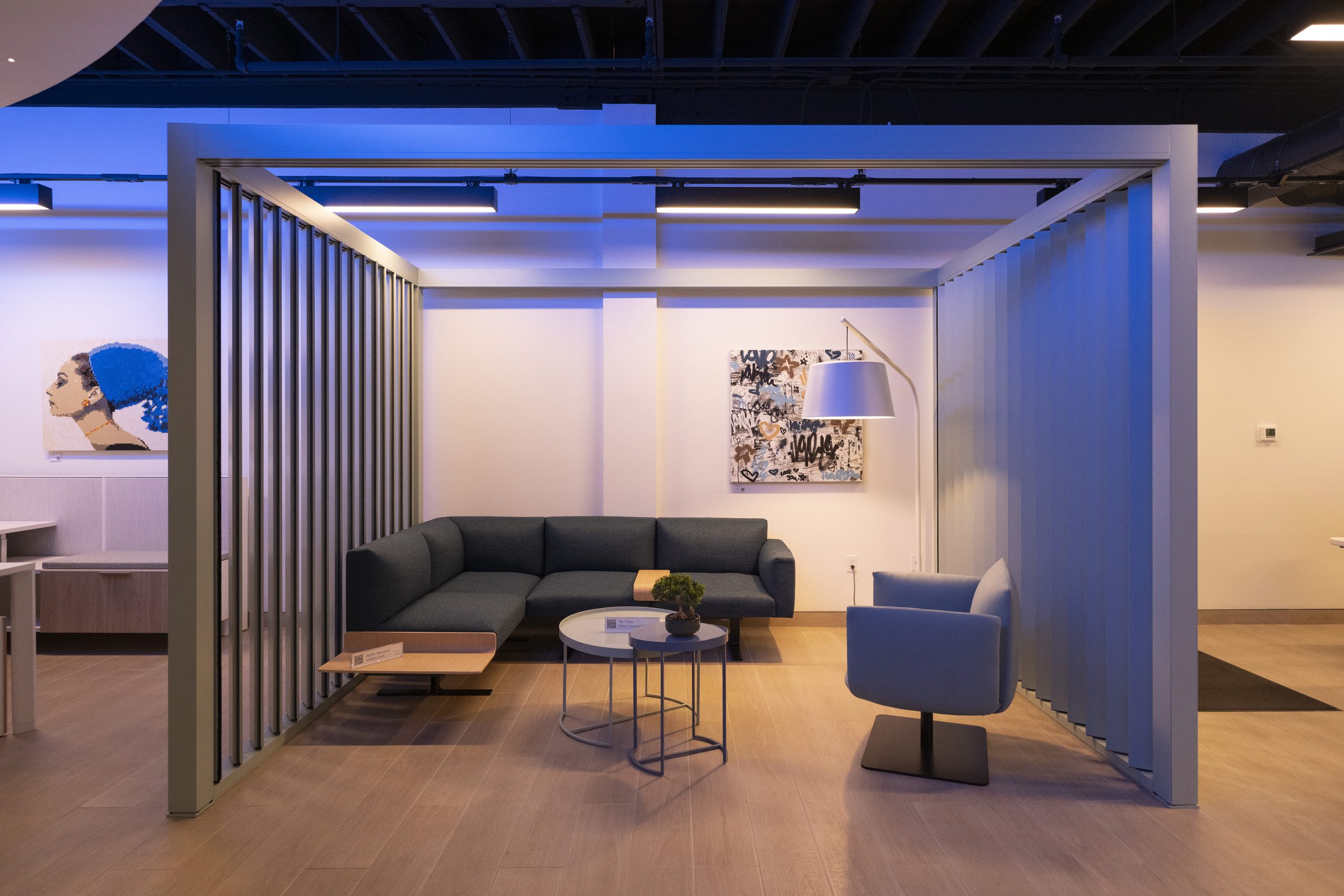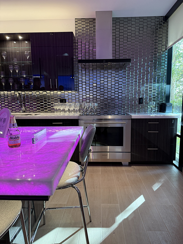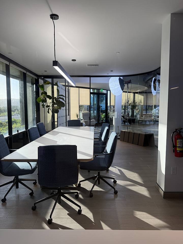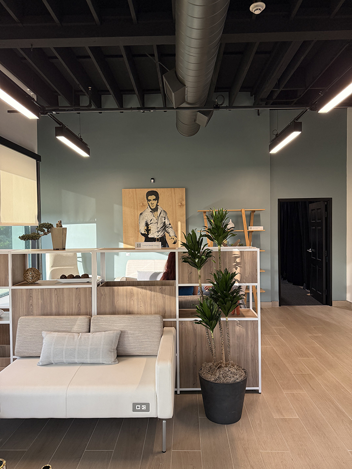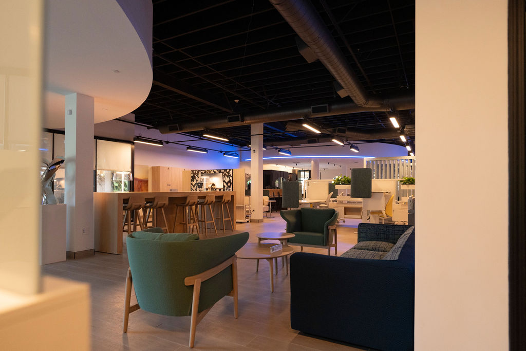 After a year of collaboration with an LED wall art installer, electrical contractor, kitchen designer, and furniture designer, the final product was born: an open flexible showroom fit for the modern, high end commercial client. Currently under construction, it’s slated to finish in early 2025 with electrical and studs already in place.